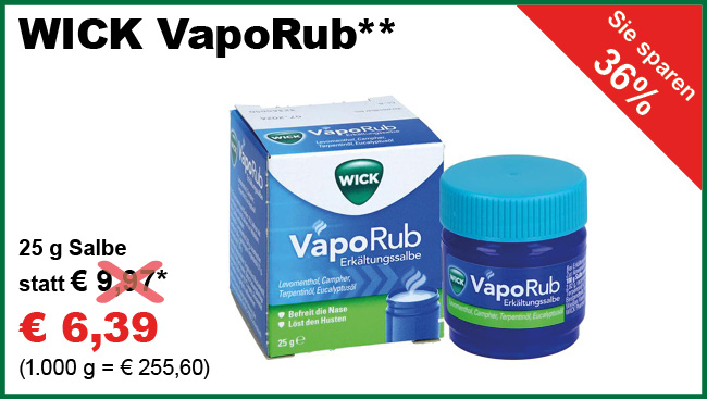 Alle Preise verstehen sich inklusive Mwst. | Preisänderungen und Irrtum vorbehalten | Angebote in haushaltsüblichen Mengen, solange der Vorrat reicht | * unser bisheriger Verkaufspreis | ** Zu Risiken und Nebenwirkungen lesen Sie die Packungsbeilage, und fragen Sie Ihre Ärztin, Ihren Arzt oder in Ihrer Apotheke. | Produktabbildungen so ähnlich.